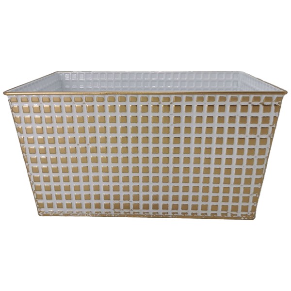 • Product Name: White with Gold Squares Metal Container 12"